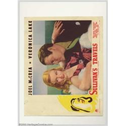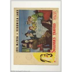 Sullivan's Travels (Paramount, 1941). (3) Lobby Cards (11" X 14"). Preston Sturges' classic comedy of Depression America is a masterpiece and one of the finest movies about movies ever made. The story centers around filmmaker John L. Sullivan, played by Joel McCrea, who wants to make a serious social statement in his next film. He hits the road, disguised as a tramp, to get in touch with the "real" people. Joined by a down-on-her-luck aspiring actress, played by Veronica Lake. The results are more than he bargained for and when the "experiment" seems to be over, Sullivan falls into even more trouble. The cards grade Fine+ to Very Fine/Near Mint. Two cards in exceptionally nice shape, card with dining in trailer has faint censor stamp. 3 pieces Important notice: Heritage usually auctions material at the rate of 200-250 lots per hour. On some occasions eBay Live bid software or the Internet may not be able to keep up with the pace of the auction. We recommend placing a realistic absentee bid now as insurance to avoid disappointment. Occasionally the auctioneer may eliminate or reject an eBay Live bid, and the auctioneer may also reopen a lot after the close of the eBay live bidding (usually because we missed an audience bid), and may reject your bid even if it shows you as the winning bidder. By bidding via eBay Live, you agree that Heritage may award the lot to another bidder at its sole discretion under the circumstances described above or any other reasonable circumstances. Also please note that all Heritage lots purchased through eBay Live carry a 20% Buyer's Premium. Please make sure you read the Terms and Conditions before you bid.