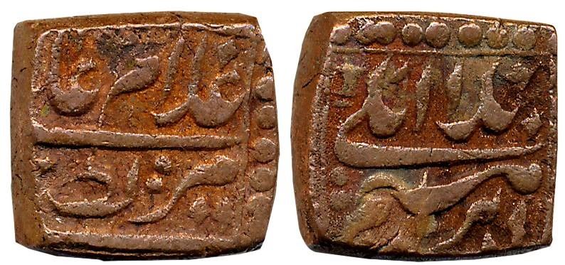 Ibrahim Adil Shah, Copper Square 1/2 Falus, 7.42g, Arabic legend on both sides, Obv: “Gulam I murtaza”, Rev: “Ali ibrahim abla bali” (G&G# BH19). Very fine+, rare.