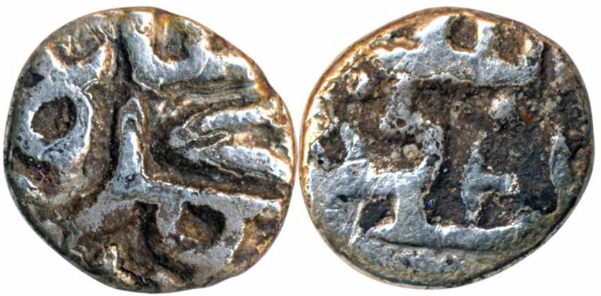 Muhammad Shah I, Silver 1/12 Tanka, 0.82g, Obv: abu’l muzaffar, Rev: Muhammad Shah (G&G# BH 36).Very fine, very rare.