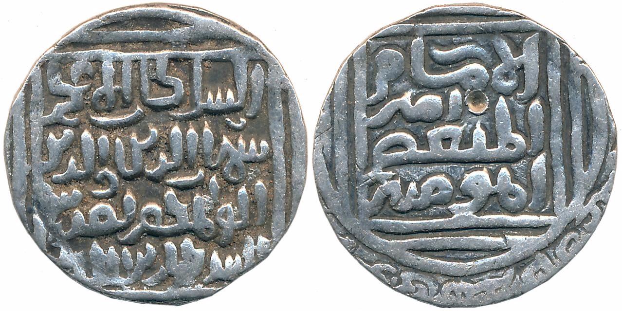 Shihab al din Bughra Shah, Silver Tanka, 10.81g, Sunargaon Mint, AH 718, Obv: al sultan al a zam Shihab al dunya wa’l din abu’l Muzaffar Bughra shah al sultan bin sultan, Rev: al imam legend caliph al mustan sim (G&G# 101). Very fine, very rare.
