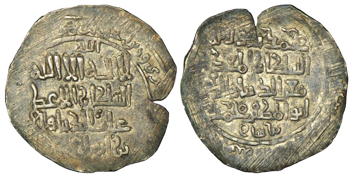 Ghurid Sultans of Ghazna and Delhi, Mu'izz al-Din Muhammad Bin Sam (1193-1206 AD), silver dirham, struck jointly with his brother Ghiyath al-Din as the supreme Ghurid overlord, Ghazna mint, date not clear, 2.48g. Obv: Arabic legend in circle, Allah La Ilah il-Allah al-Sultan al-'Azam Ghiyath al-Dunya wa al-Din…bin Sam; other titles in margins. Rev: Arabic legend in circle, Muhammad Rasool Allah al-Sultan al-Mu'azzam Abu al-Muzaffar Muhammad bin Sam; date and mint in margins. Not listed in G&G.