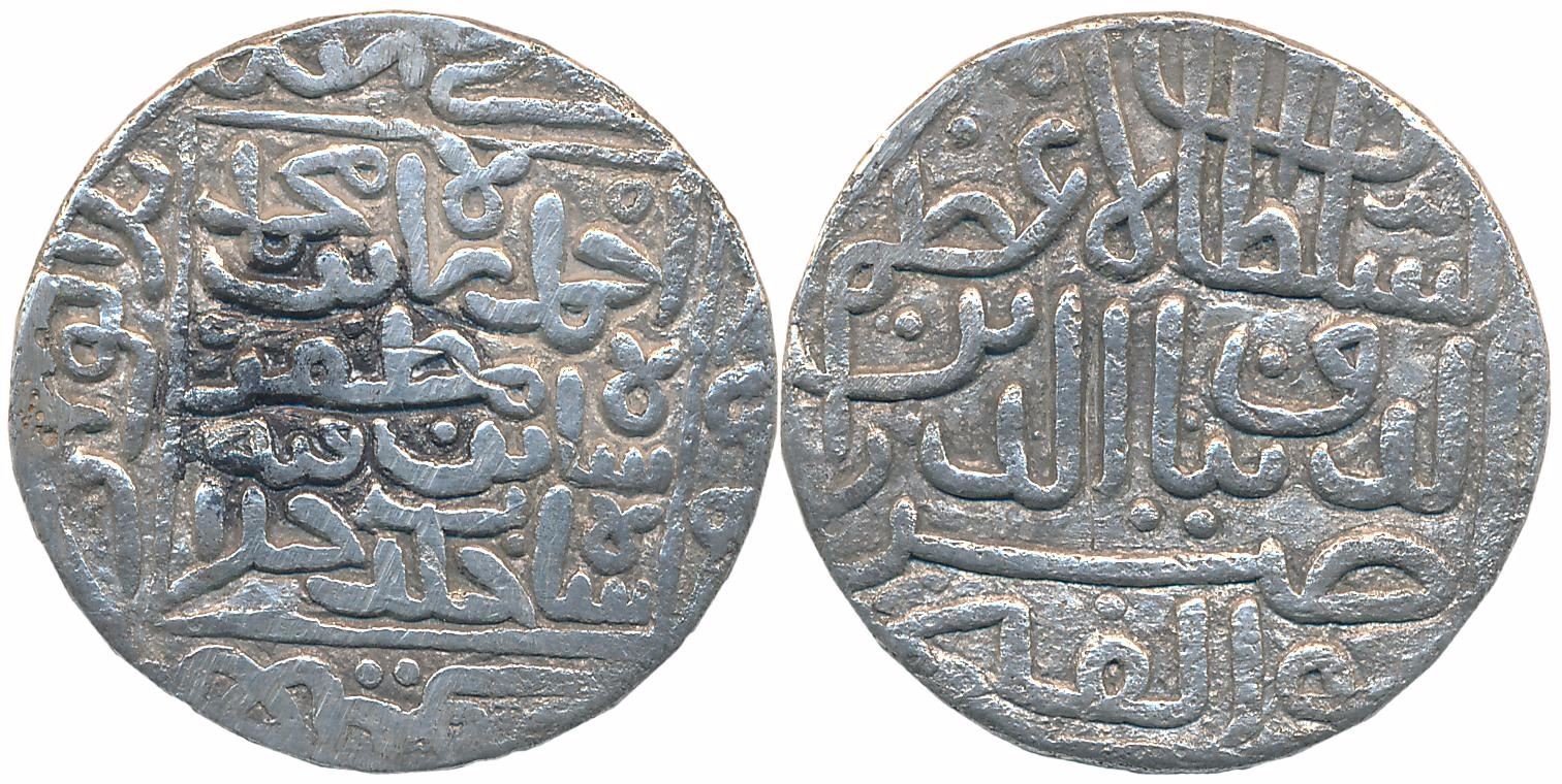 Nasir al din Ahmad Shah I, Silver Pedigree Tanka, 10.44g, Obv: ahmad shah bin Muhammad shah bin Muzaffar shah khulidat khilafatahu, Rev: al-sultan al-a’zam nasir al-dunya wa’l din abu’l fath (G&G# G8). Very fine, extremely rare.
