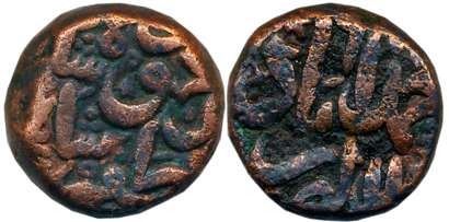Shams al din Muzaffar III, Copper Falus, 11.04g, Ahmedabad Mint, struck on Mughal style (G&G# G601). Very fine, rare.