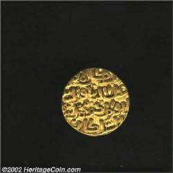 Sultans of Delhi Gold Tanka, circa 1400AD, style of Fr-242. Nice VF+, very bold details. Important notice: We expect to be auctioning lots at the rate of 200-250 per hour. Sometimes eBay Premier live bid software cannot keep up with that pace, so we strongly recommend that you place a realistic proxy bid now as insurance to avoid disappointment. Also please note that all Heritage/CAA lots purchased through eBay Premier carry a 20% Buyer's Premium. Please make sure you read the Terms and Conditions.