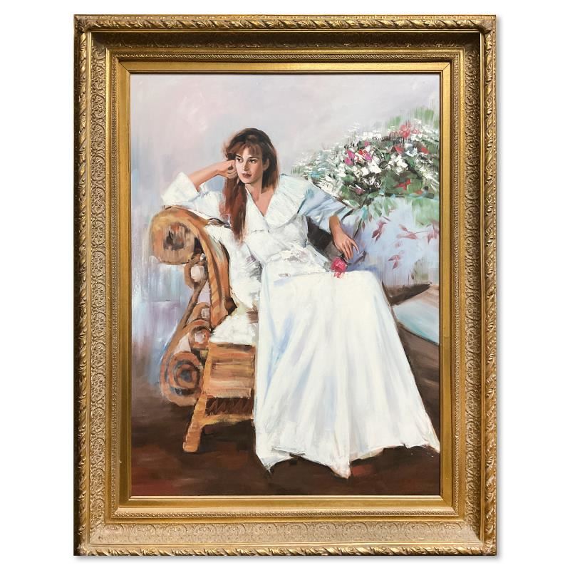 "Summer Dreams" is an original oil painting on canvas by K. Harris, hand signed by the artist. This piece comes framed. Includes Letter of Authenticity. Measures approx. 49.5" x 39.5" (frame), 38" x 29" (image). There is some minor wear on the frame.