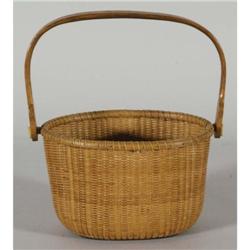 NANTUCKET BASKET 9"X 6 1/2" oval with handle, CONDITION: four wraps at rim missing, PACKING AND SHIPPING: Fairfield Auction will provide ...