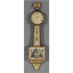 FEDERAL BANJO CLOCK with eglosime panels, the face signed "S. Willard" bottom glass with a crack, probably mid-19th century, CONDITION: 8...