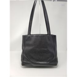 Description: Chanel vintage small CC stitched logo tote bag black. Smoot