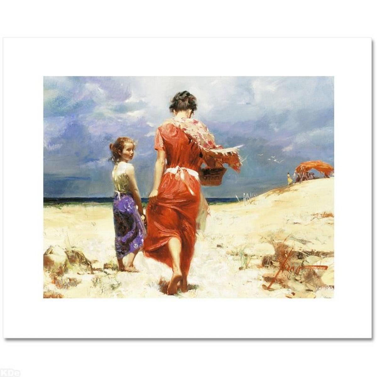 Summer Retreat by Pino (1939-2010). Pino's portraits allow glimpses into intensely personal, intimate spaces, conveying emotion through rich, warm color and sensual brushwork. "Summer Retreat" is a limited edition giclee on canvas that has been hand-embellished by Pino himself, AP numbered and hand signed by Pino (1939-2010). Includes Certificate of Authenticity! Measures approx. 16" x 12" (image).