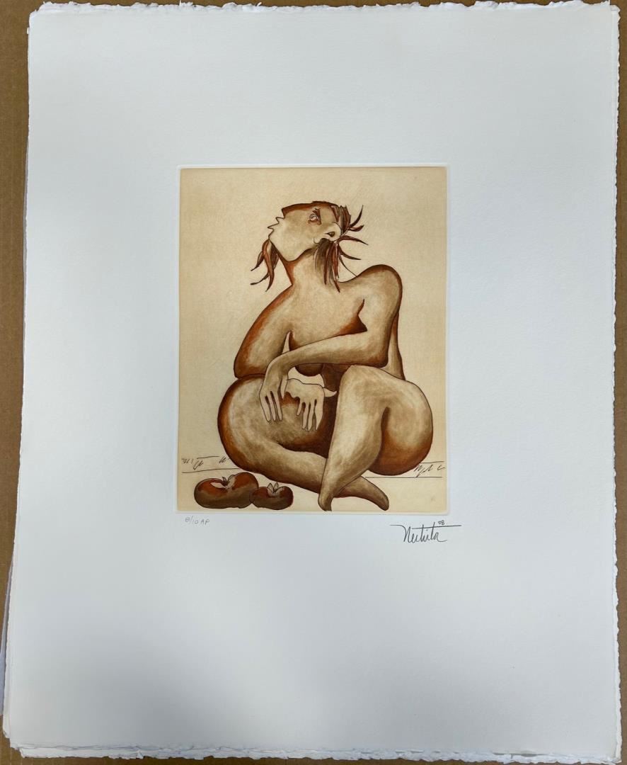 A charming sepia toned etching 23x28" on rag paper, image size 10.75x8.25. We have pencil-signed Artist Proof numbers 8, 9 and 10.