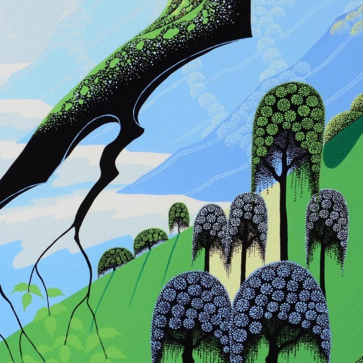 Larissa Holt, a student of distinguished artist Eyvind Earle(1916-2000), uses bold colors and breathtaking scenery to create images of Nature in her own unique style. "Summer" is a limited edition giclee on stretched canvas by Holt, numbered and bearing Holt's authorized signature. This piece comes gallery wrapped. Includes Certificate of Authenticity! Measures approx. 12" x 10" x 1.5" (image).