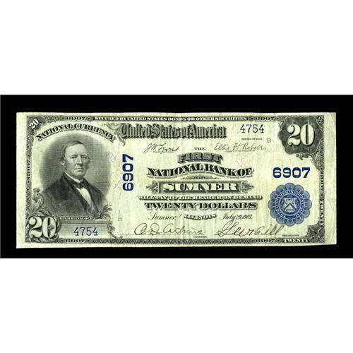 <B>Sumner, IL</B></I> - $20 1902 Plain Back Fr. 650 <B>The First NB</B></I> Ch. # 6907<BR>While small notes are occasionally available from this one bank location, large examples are another matter entirely, with this one of only three such examples known from here. It's as nice as any, not surprising considering its pedigree, which traces back to the Lonnon and Shaw collections, two of the three finest holdings of Illinois notes ever assembled. Pen signed <B>Very Fine.</B></I><BR><I>From The Lincoln Collection</B></I><BR><BR><b>Shipping:</b> Coins & Currency (<a target="_blank" href="http://www.heritageauctions.com/common/shipping.php">view shipping information</a>)