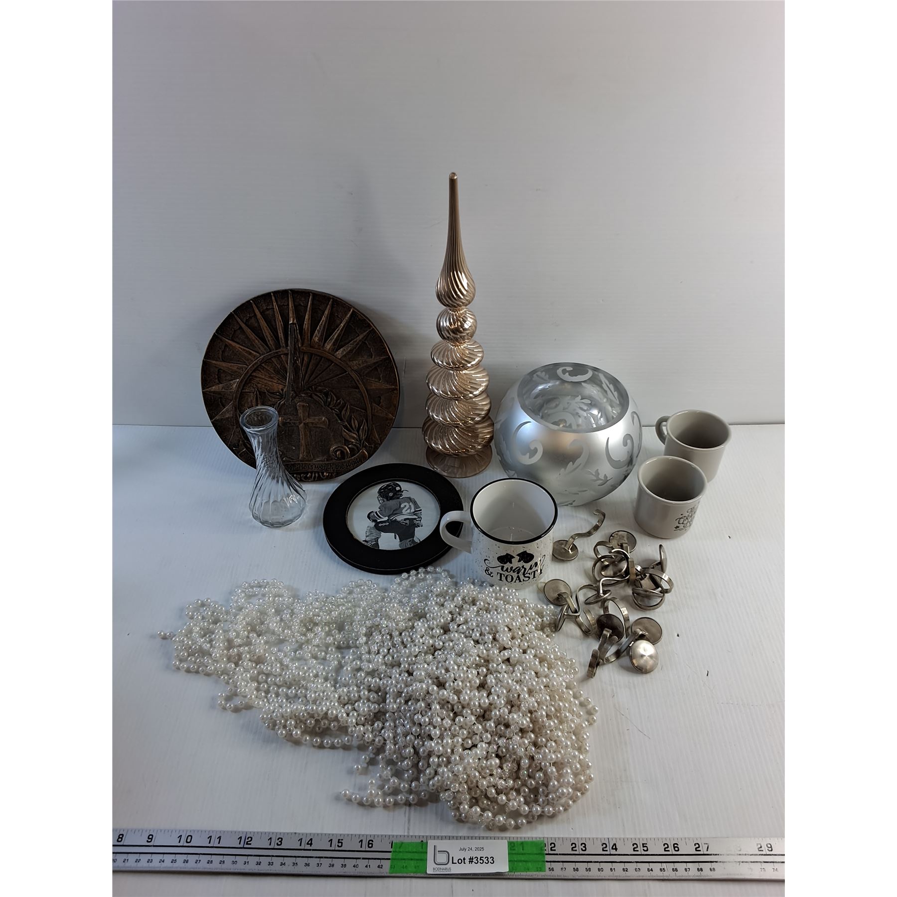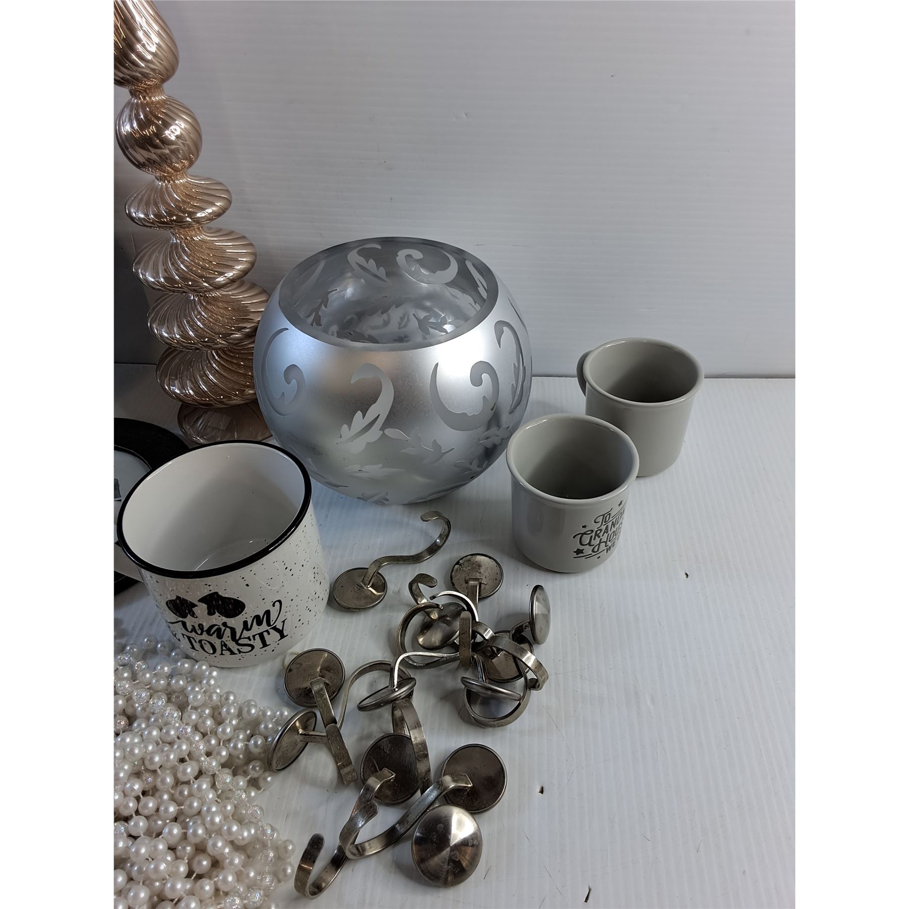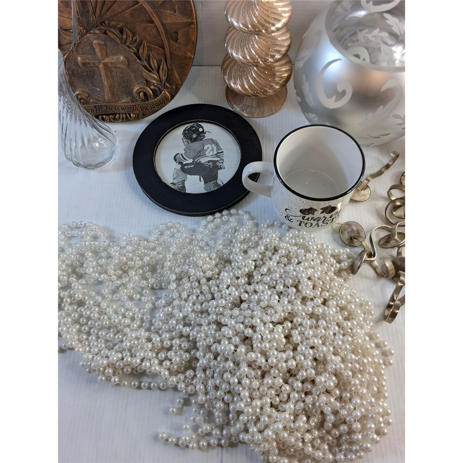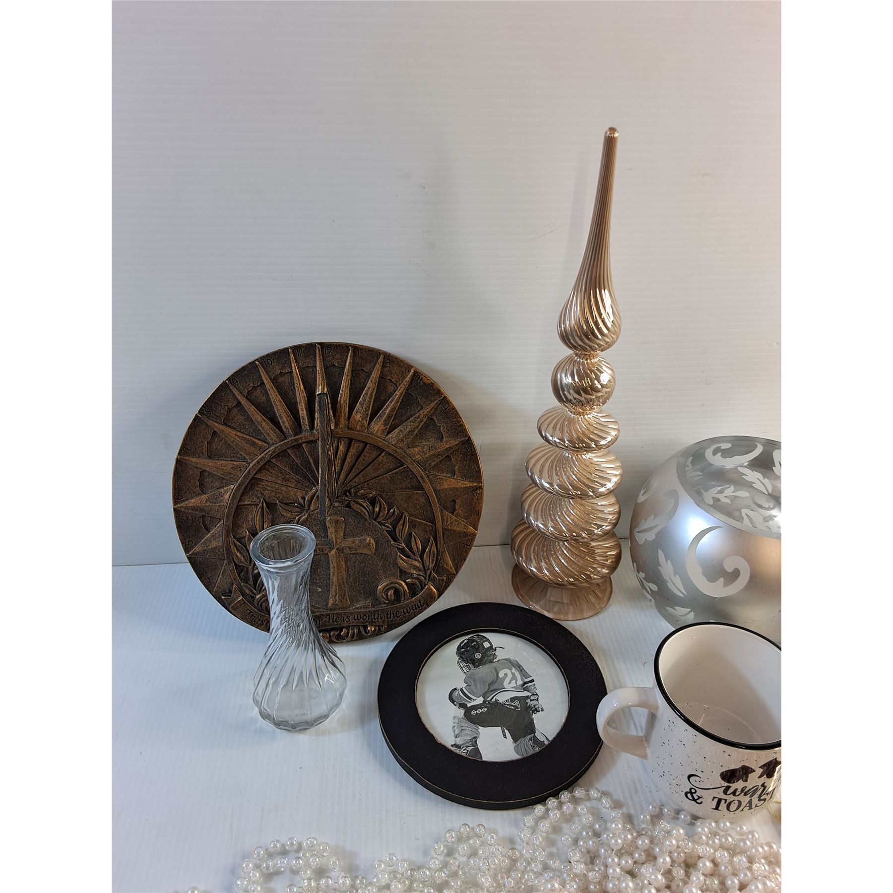 Sun Dial, Picture Frame, Mugs, Vases, Glass Tower Decor and Pearls