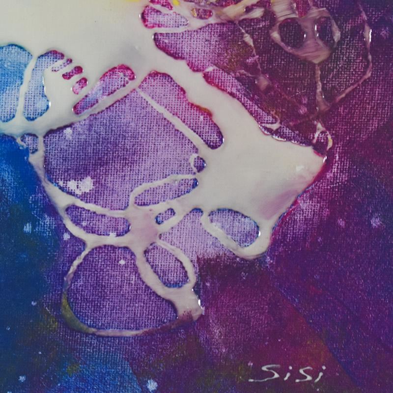 "Jellyfish 3" is an original acrylic painting on canvas board by Sisi Sun, hand signed by the artist. This piece comes custom framed. Includes Letter of Authenticity. Measures approx. 22.5" x 22.5" (frame), 15" x 15" (image).