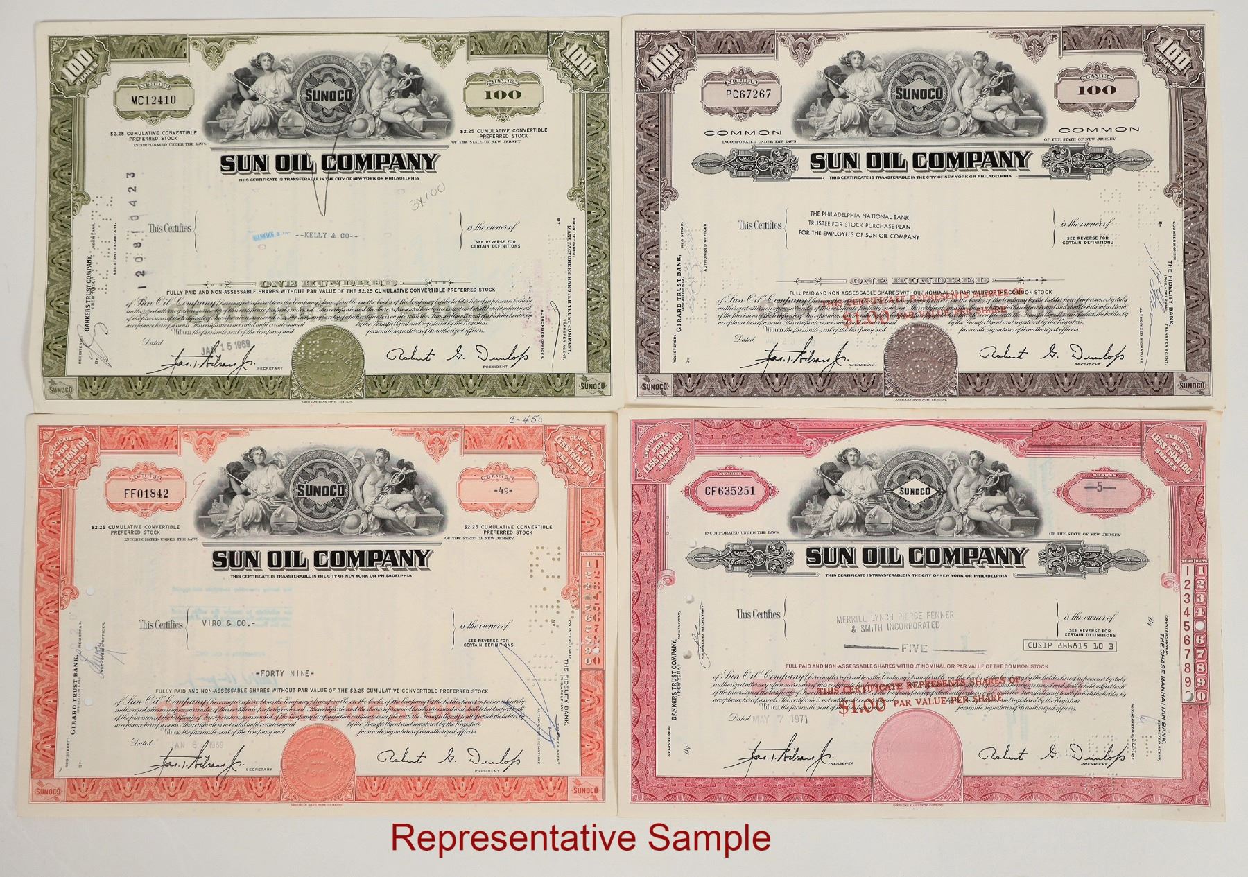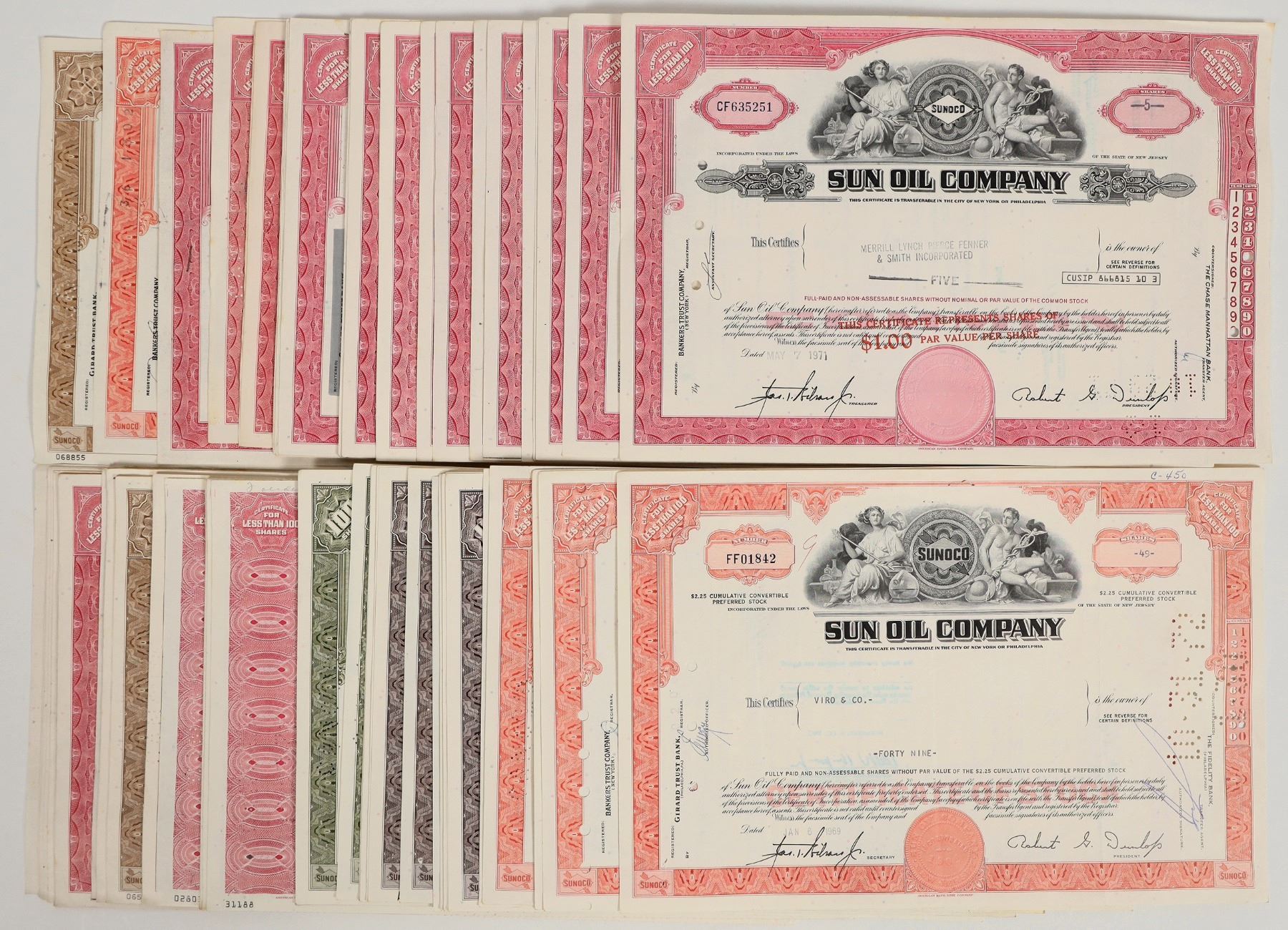 About 100 Sun Oil Company Stocks c. 1970s. Six varieties.