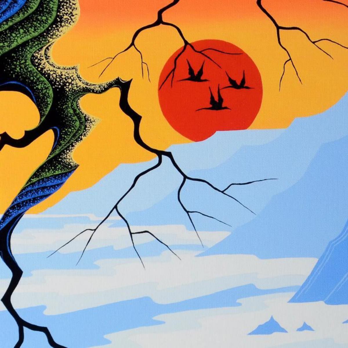 Larissa Holt, a student of distinguished artist Eyvind Earle(1916-2000), uses bold colors and breathtaking scenery to create images of Nature in her own unique style. "Sun Over Cliffs" is a limited edition giclee on stretched canvas by Holt, numbered and bearing Holt's authorized signature. This piece comes gallery wrapped. Includes Certificate of Authenticity! Measures approx. 27" x 22" x 1.5" (image). Reference #: 237470.