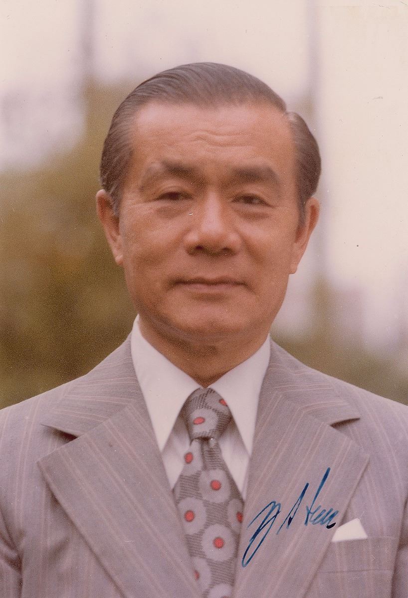 Premier of the Republic of China (1913–2006) who served from (1978–1984). Two color glossy photos of Sun Yun-suan, 3 x 5 and 4.75 x 7, signed in black and blue ink respectively. In fine condition, with a couple of light creases to top of larger photo.