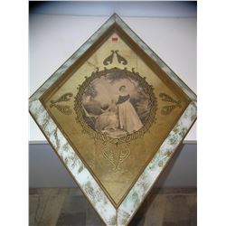 Antique painting on glass in fancy decorated diamond shaped frame circa early 1900's est. value $100.00-$150.00