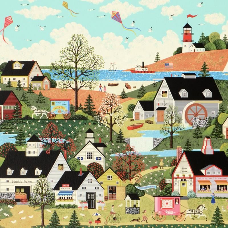 "Sunday in New England" is a limited edition serigraph on paper by Jane Wooster Scott, numbered and hand signed by the artist. Includes Certificate of Authenticity. Measures approx. 26" x 22" (border), 21" x 16" (image).