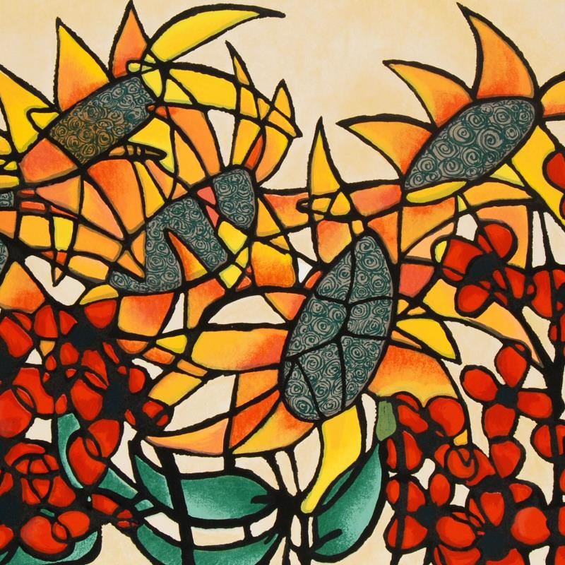 "Sunflowers" is a limited edition serigraph on paper, numbered and hand signed by Avi Ben-Simhon. Includes Certificate of Authenticity! Measures approx. 29.5" x 20.5" (with border), 27" x 18" (image).