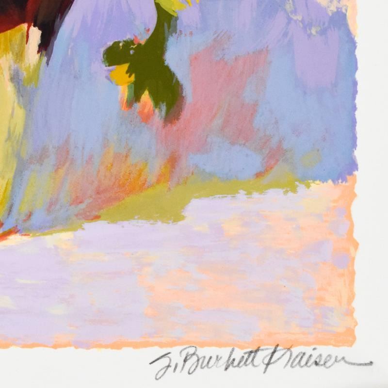 "Sunflowers" is a limited edition giclee on paper by S. Burkett Kaiser, numbered and hand signed by the artist. Includes Letter of Authenticity. Measures approx. 15" x 15" (border), 12" x 12" (image).