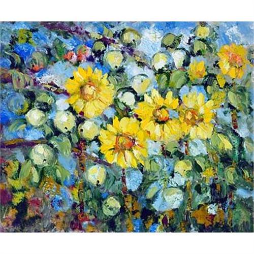 <tr><td>Title:"Sunflowers through apple-tree" Impressionism</td></tr>