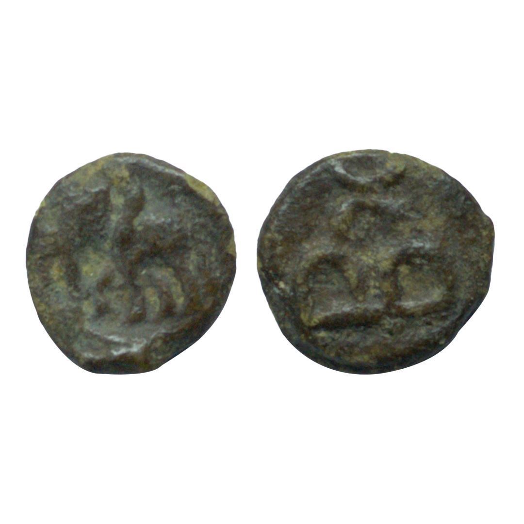 Sunga Dynasty, Central India, Cast Copper, 2.11Grms, Obv: Elephant walking to left side front of like a pole symbol, Rev: Three arched hill above crescent. Fine.