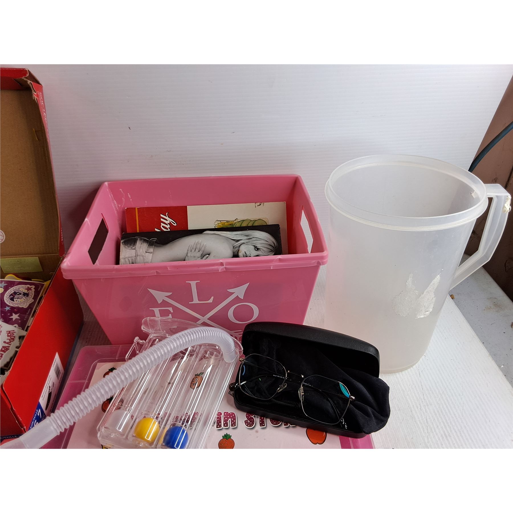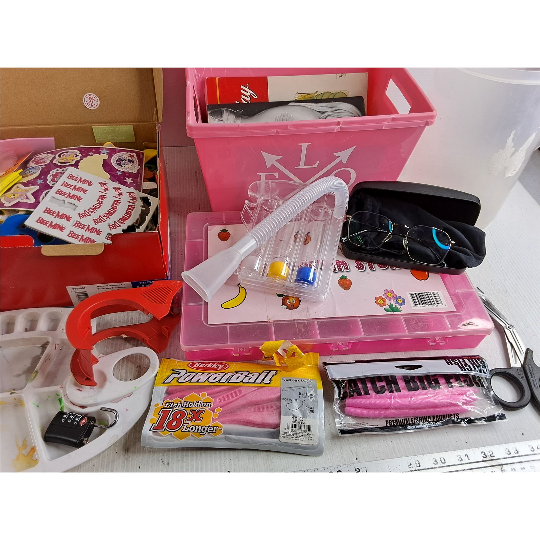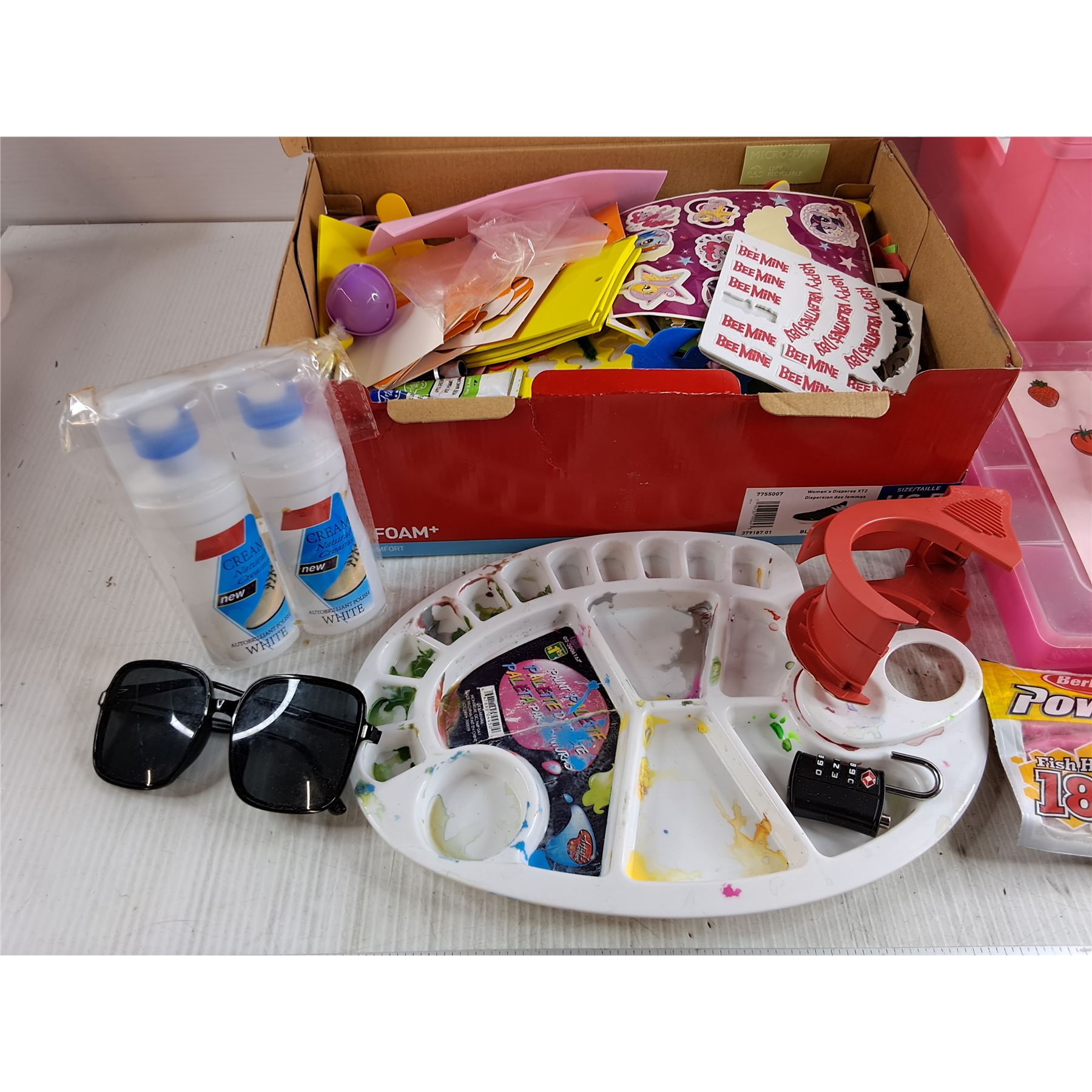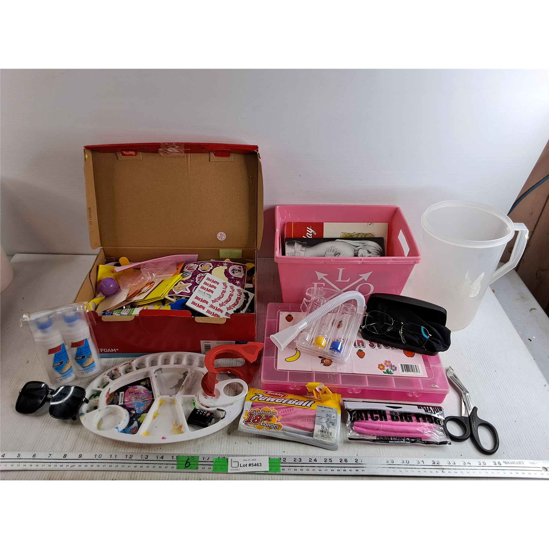 Sunglasses, Various Stickers, Paint Palette, Shoe Cream, Pink Tote, Misc