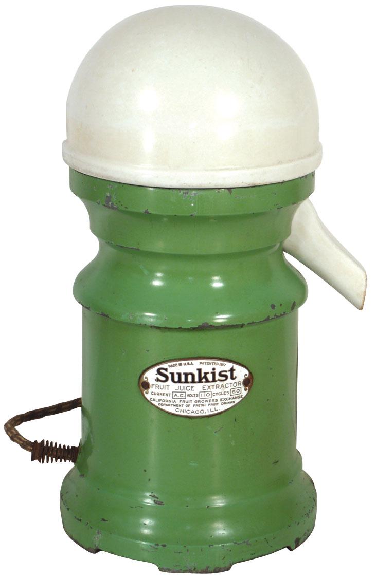 Sunkist Fruit Juice Extractor, dated 1917, cast iron base w/porcelain top, complete, orig paint, VG working cond, 17"H.