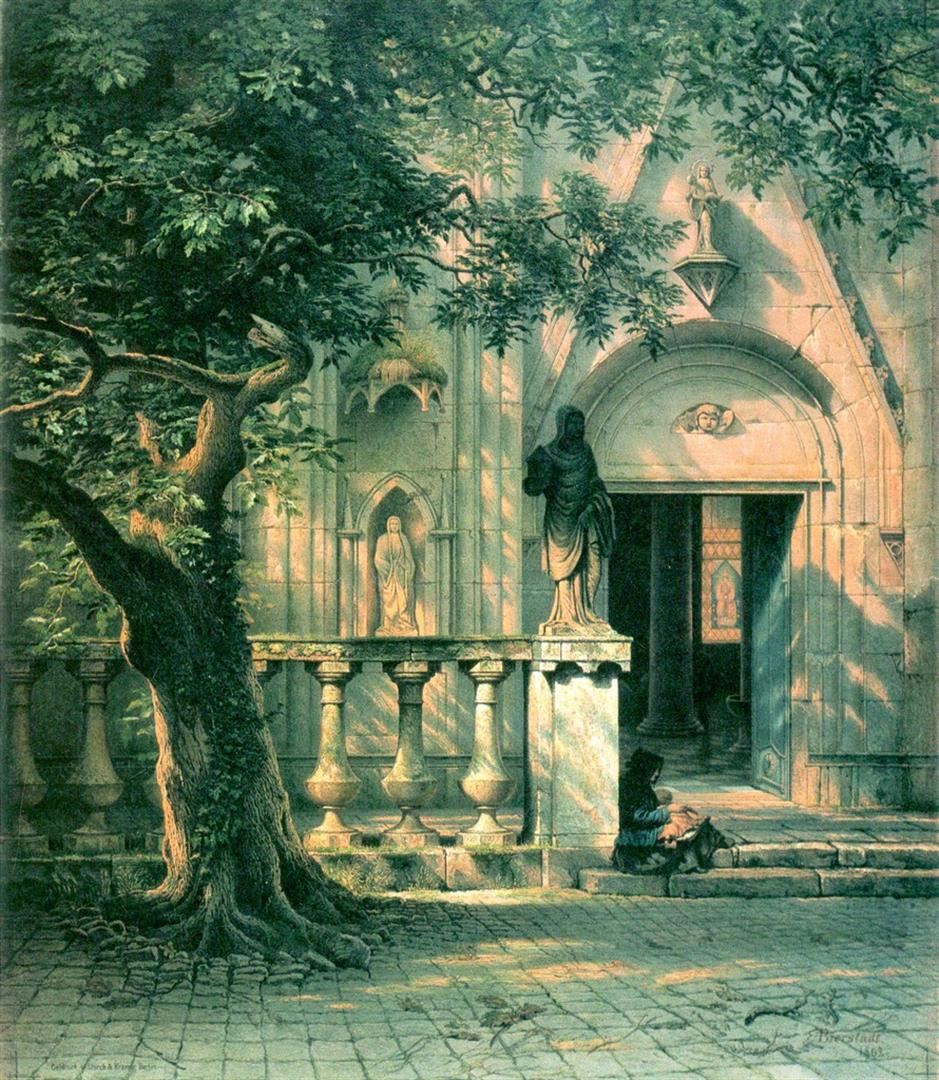 Artist: Albert Bierstadt (b. 1939) - Title: Sunlight and Shadow - Medium: Fine Art Giclee on Canvas - Image Size: Approximately 20 inches x 17.5 inches - Framed: Unframed on Unstretched Canvas - Biography: Bierstadt became internationally renowned for his beautiful and enormous paintings of the newly accessible American west, and his works found their way into public and private collections at staggeringly high prices for his time. His popularity and wealth rose to tremendous heights only to fade as the interest in the Boston School and impressionism turned public taste away from his highly detailed landscapes suffused with golden light. -