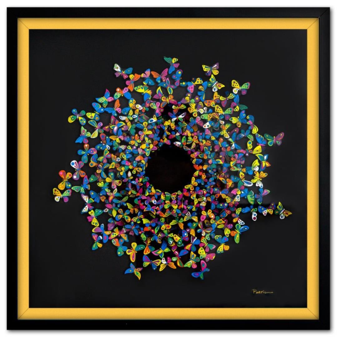"Sunlight" is a limited edition 3D multilayered woodcut by Patricia Govezensky. Hand signed and numbered out Edition only 25 pieces, this pece comes framed and with a letter of authenticity. Measures approximately 22.5" x 22.5" (framed), 18" x 18" (piece).