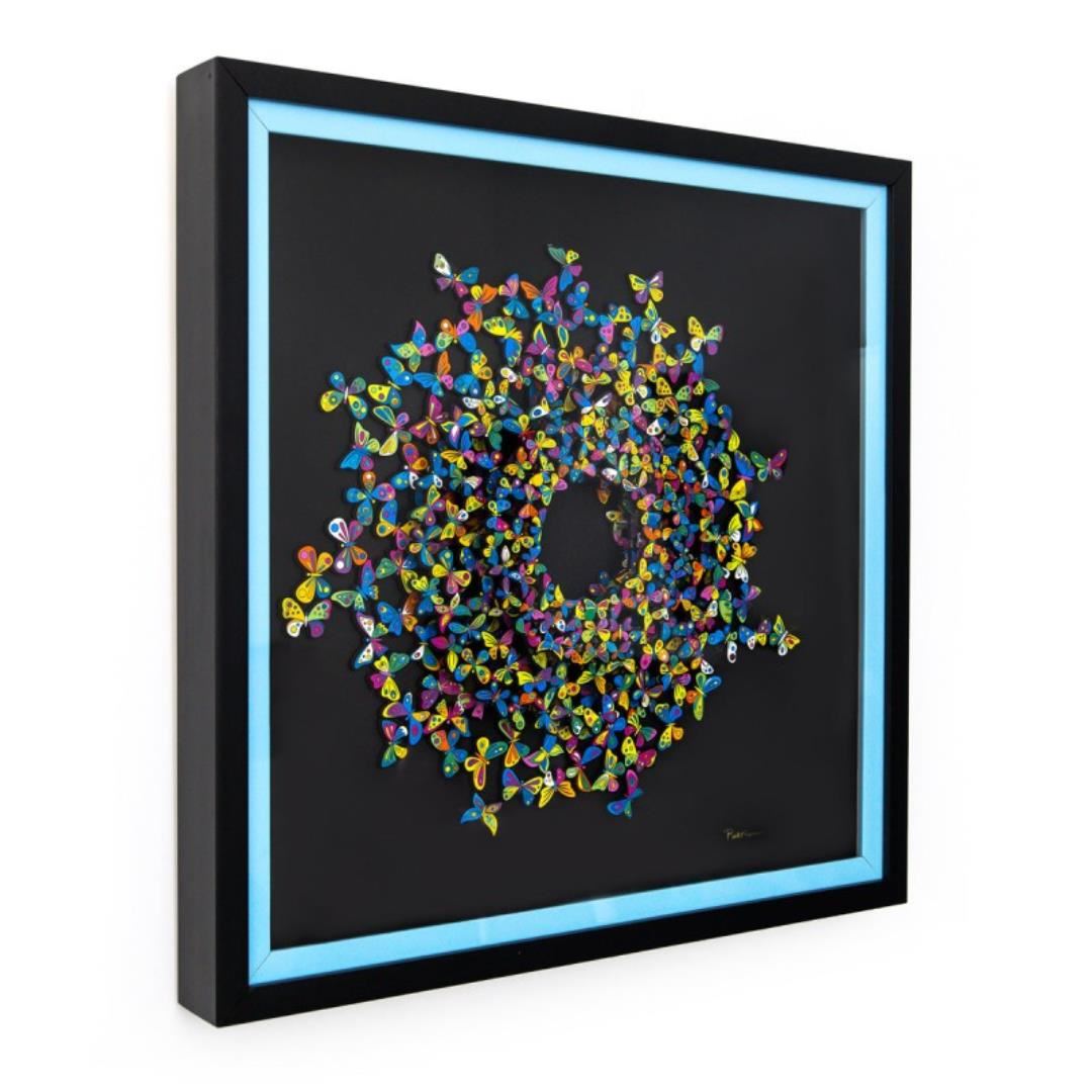"Sunlight" is a limited edition 3D multilayered woodcut by Patricia Govezensky. Hand signed and numbered out Edition only 25 pieces, this pece comes framed and with a letter of authenticity. Measures approximately 22.5" x 22.5" (framed), 18" x 18" (piece).