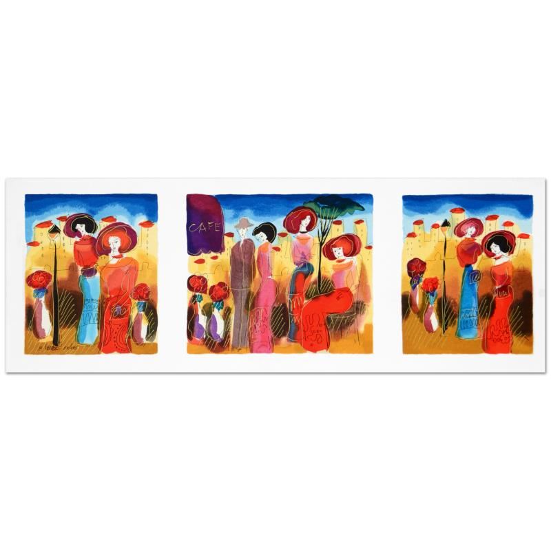 "Sunny Afternoon" is a limited edition triptych serigraph on paper, numbered hand signed by Moshe Leider. Includes Certificate of Authenticity! Measures approx. 25.5" x 11.5" (with border), 28" x 9.5" (all three images).