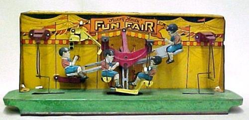 Sunny Andy Fun Fair; mechanical tin toy; some paint loss along top edge, 14"across and 5" high;