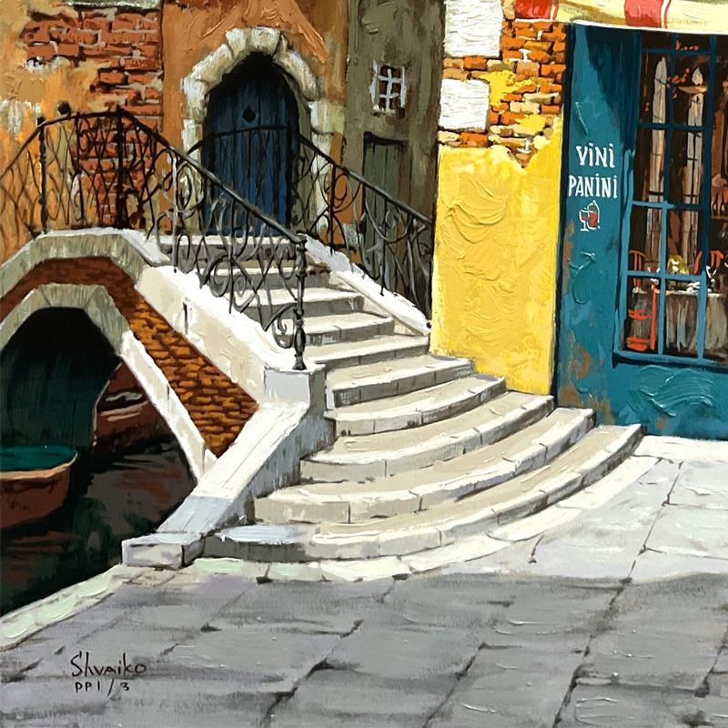 "Sunny Day in Venice" is a hand embellished limited edition printer's proof on stretched canvas by Viktor Shvaiko, numbered 1/3 and hand signed by the artist. Includes Letter of Authenticity. Measures approx. 34" x 55" (image). There may be minor wear on the corners and edges that will be concealed when framed.