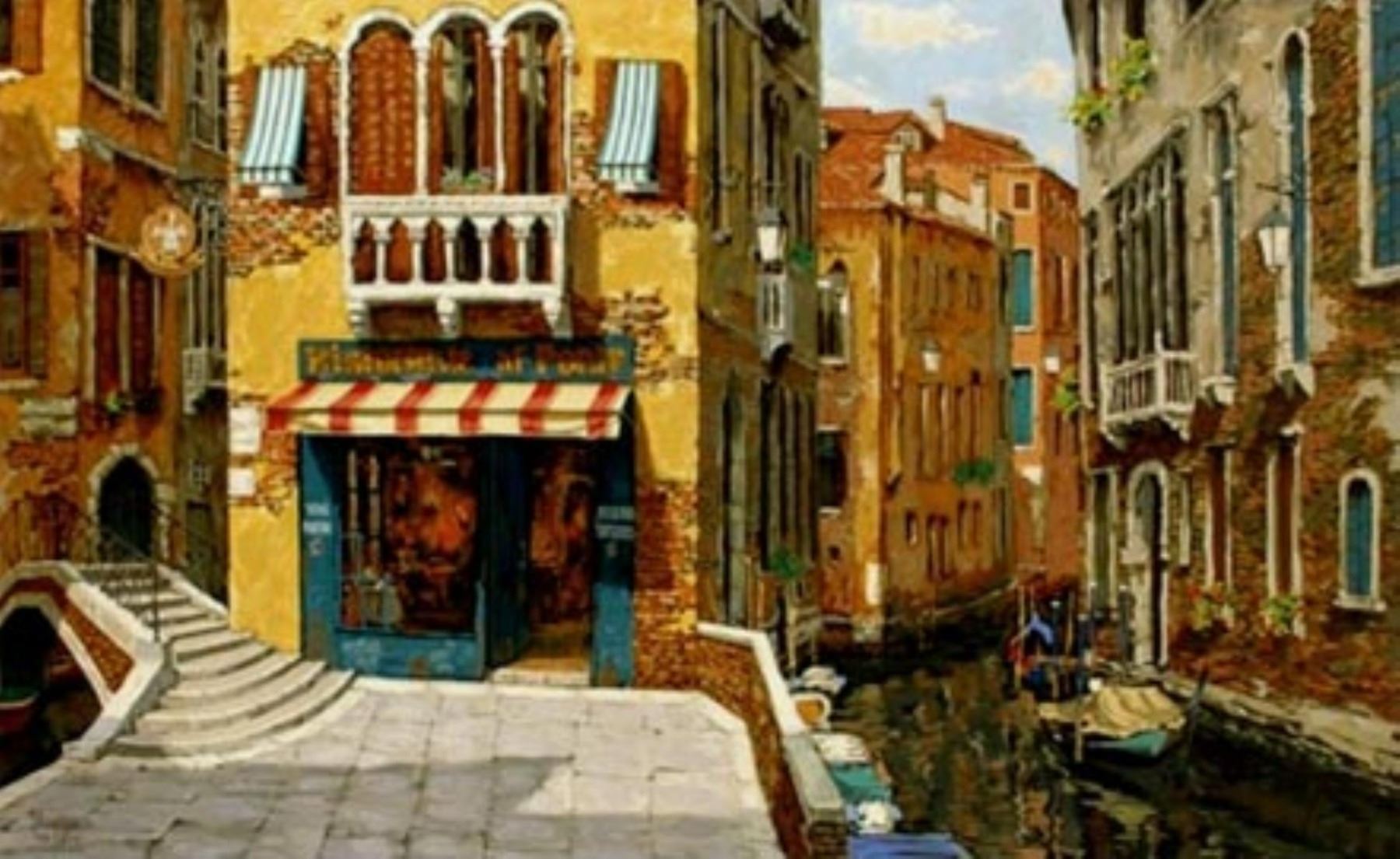 Sunny Day in Venice by Victor Shvaiko. Unframed and stretched on Limited Edition enhanced canvas. Comes with certificate of Authenticity! Dimension (inches): 33x55