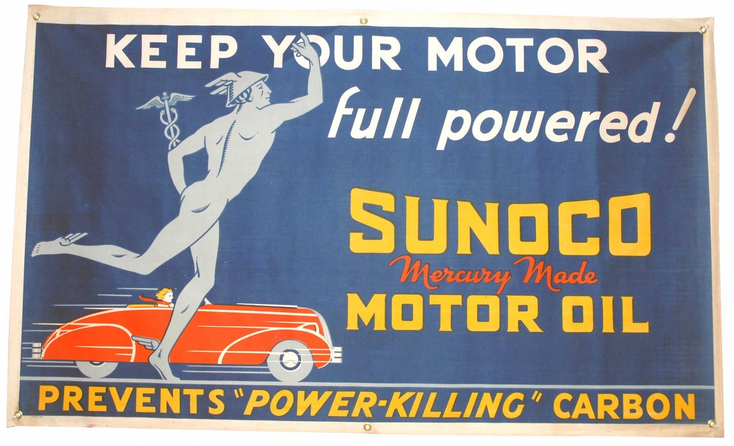 Sunoco Motor Oil Banner, NOS. Near mint condition. 58 X 36 inches.