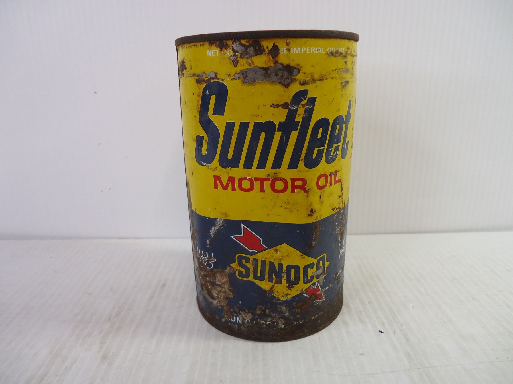 Sunoco Sunfleet Motor Oil (full tin) has dents