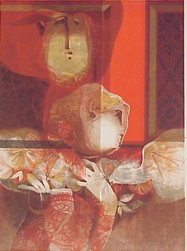 VISIONS DE POETA, 1978, embossed color lithograph, signed in pencil, from the numbered edition 185, image 27 ½ x 20”, full margins, minor skinning on verso from previous hinges. $500/700