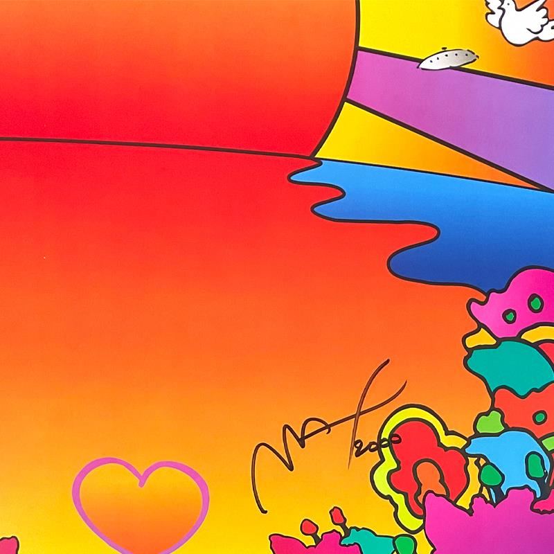 "Sunrise 2000" is an offset lithograph on paper by Peter Max, hand signed by the artist. This piece comes custom framed. Includes Letter of Authenticity. Measures approx. 23" x 28" (frame), 19" x 24" (image).