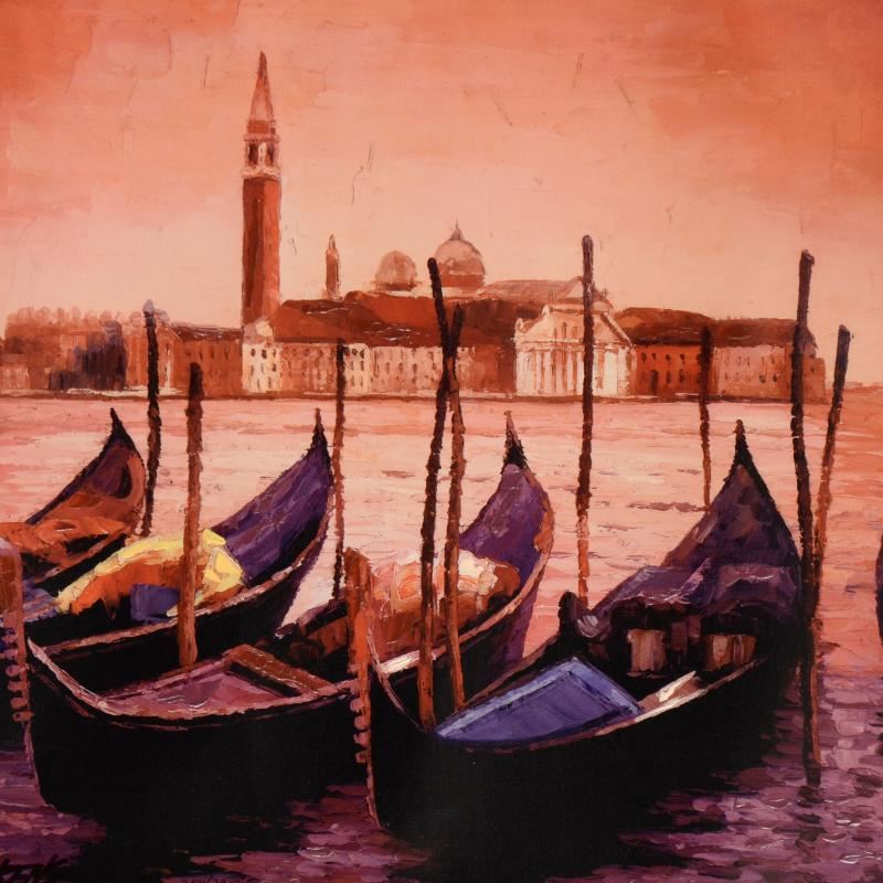 "Sunset on the Grand Canal 5" is a limited edition hand embellished giclee on canvas by Howard Behrens (1933-2014), numbered and bearing the artist's authorized signature. Includes Certificate of Authenticity! Measures approx. 24" x 16" (image).