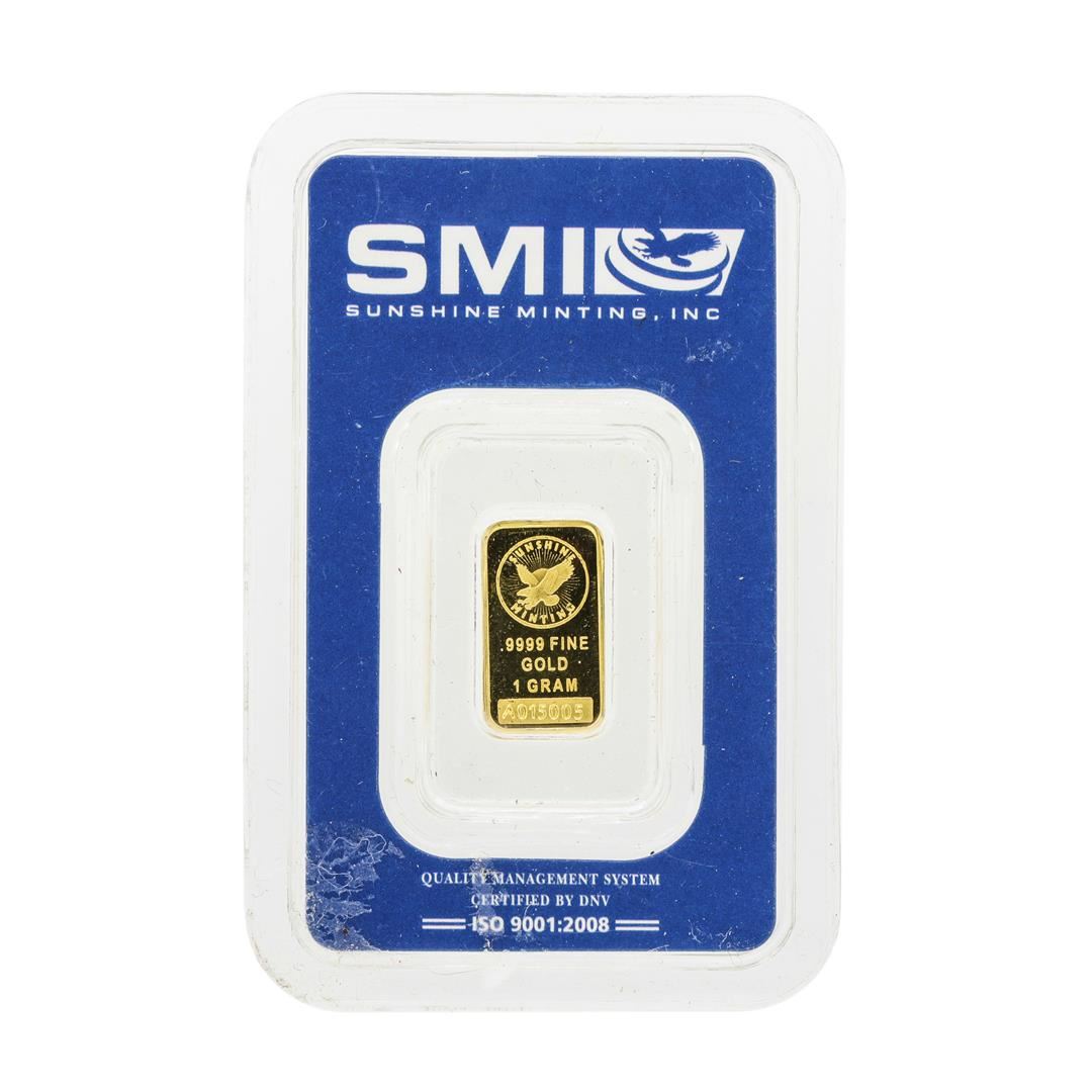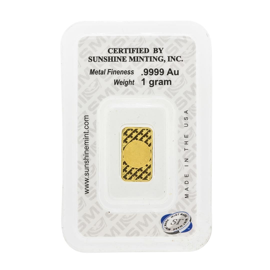One Sunshine Mint 1 Gram .9999 Fine Gold Ingot.