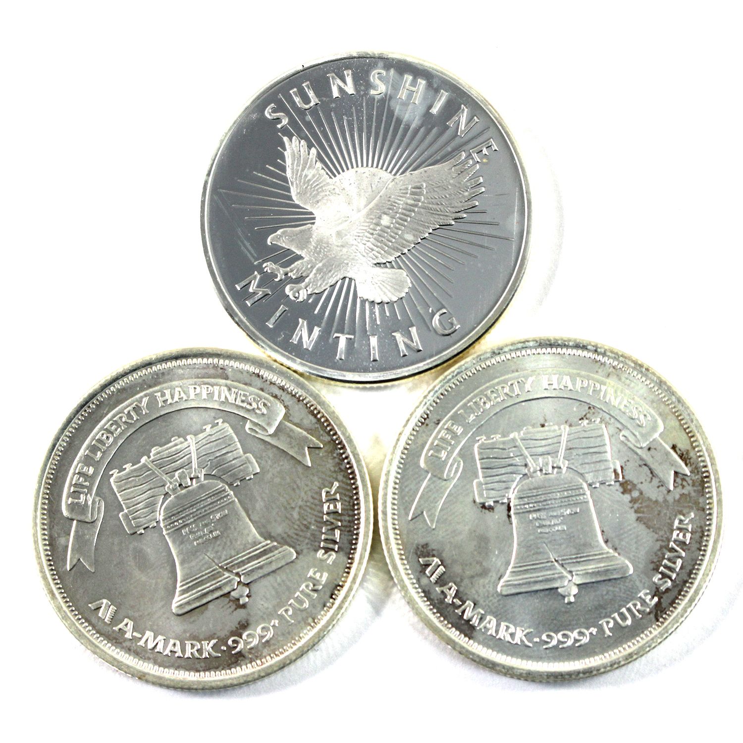 Sunshine Minting & 2x A-Mark 1oz .999 Fine Silver Rounds (Toned). 3pcs (Tax Exempt)