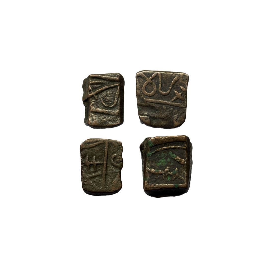 Sunth, Anonymous issue, Copper Paisa (2 coins), Obv: Nagari Shri in retrograde with katar symbol, Rev: Katar symbol. (Panchal # 313).