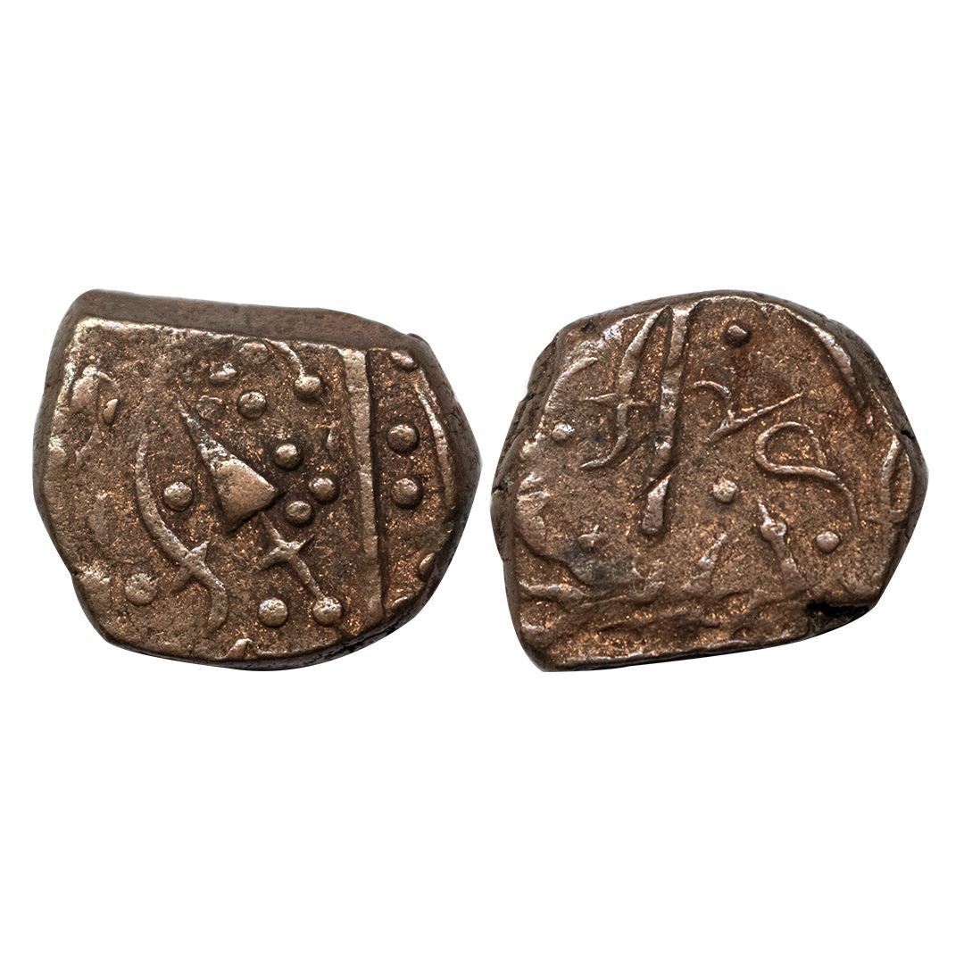 Sunth State (1870-1920 AD), Copper Paisa, 8.71 gms, ND,arrow Heads with dots on obverse and sword on reverse, very fine, scarce.