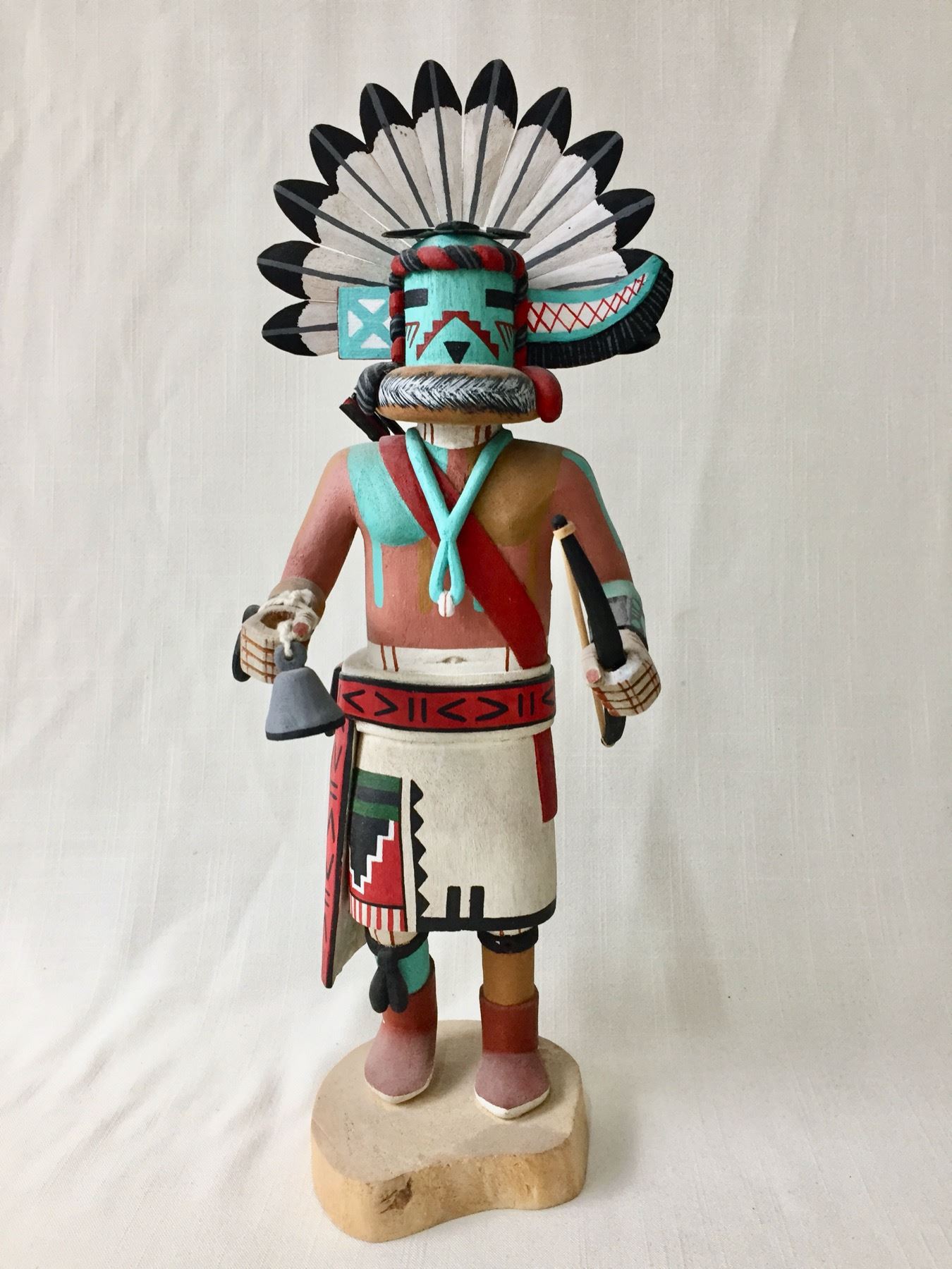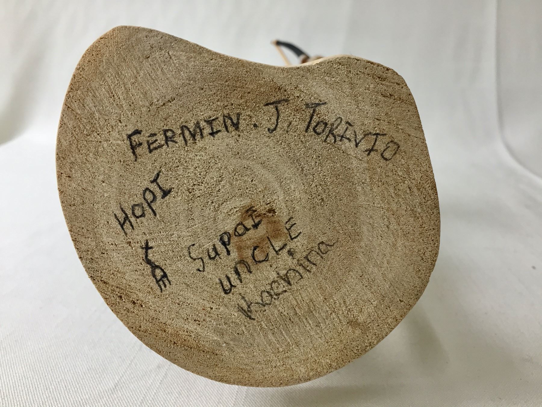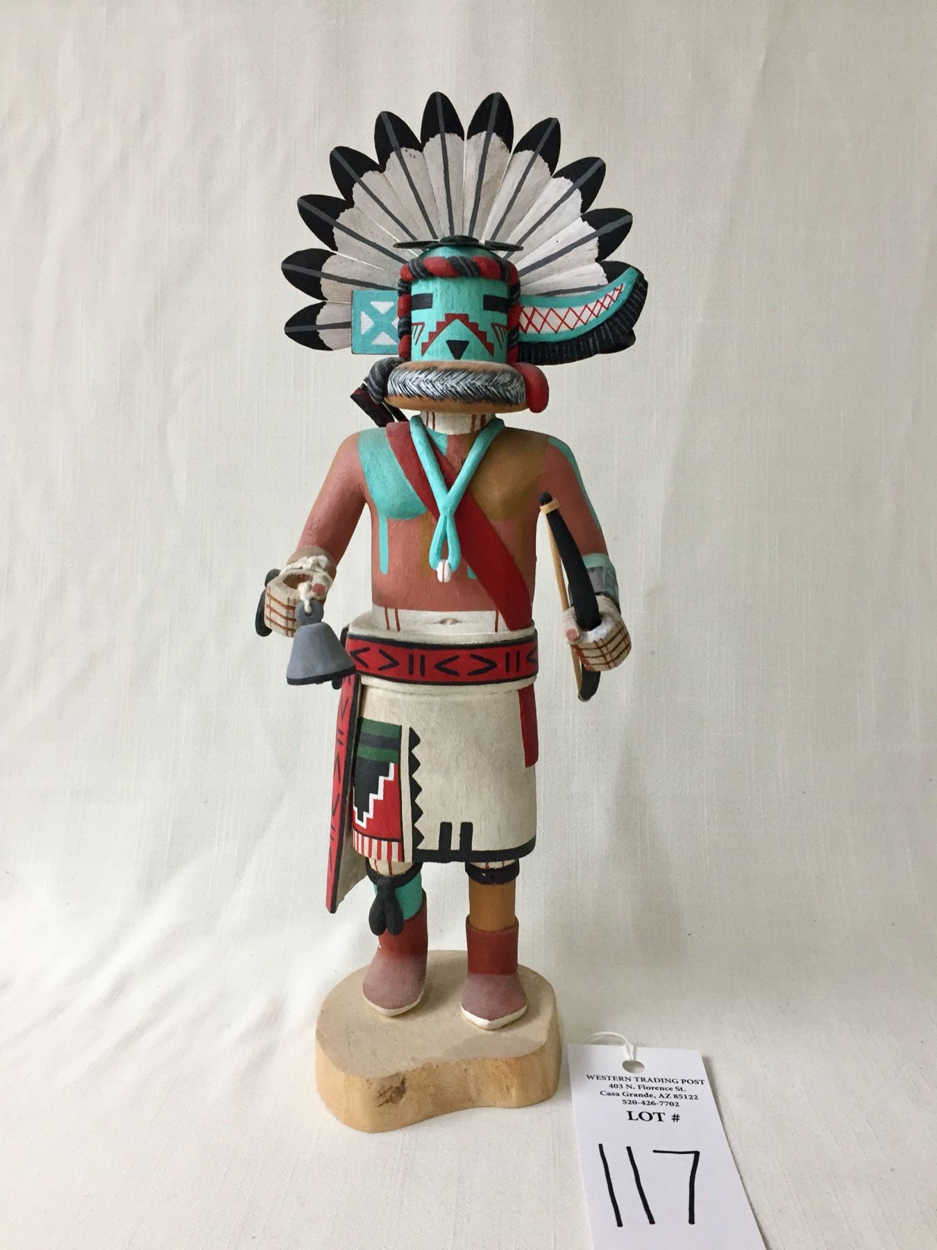 Description: Offered for sale in this lot is this beautiful Supai Uncle Kachina which is beautifully made and brightly painted. Maker: Fermin J. Torivio, Hopi. Approx. Age: Fairly modern. Size: 13-1/2 inches tall x 5 inches wide. Condition: Good for its age, normal wear expected. Please look closely at the pictures - they are an important part of our description. Shipping: There will be a $8 handling, packaging fee for shipping this lot. The actual cost of postage will be added on top of that.