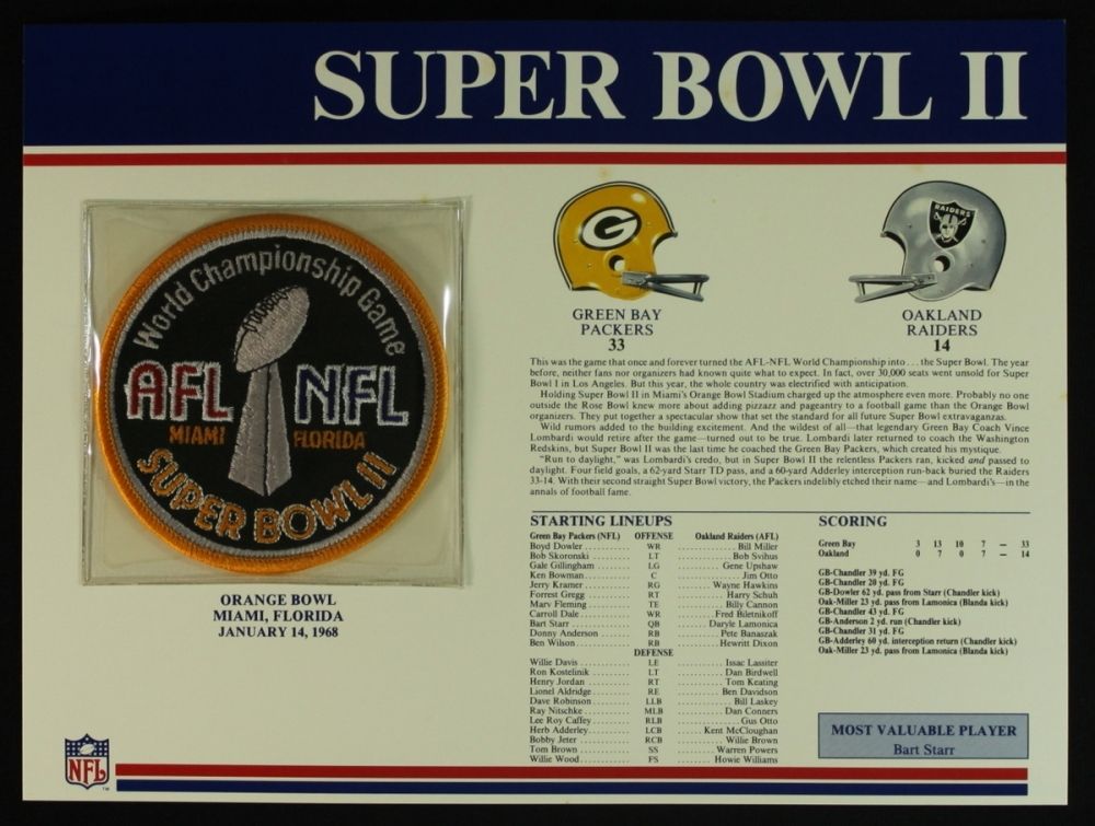 Super Bowl II Patch With 12x9 Scorecard: Packers vs. Raiders