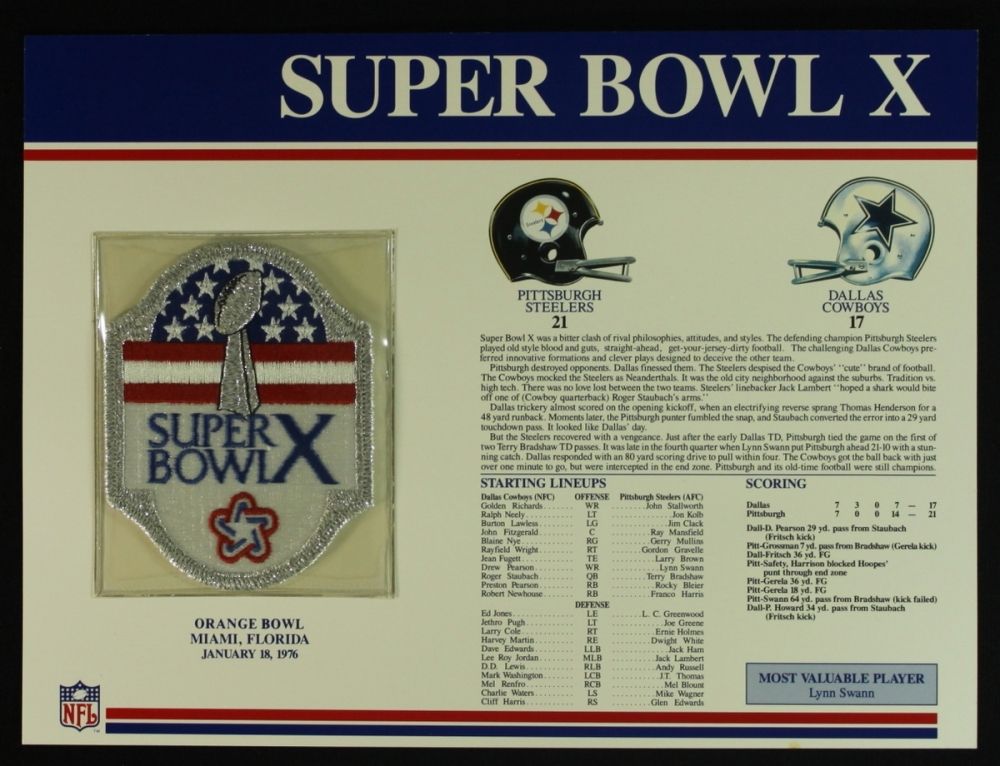 Super Bowl X Patch With 12x9 Scorecard: Steelers vs. Cowboys