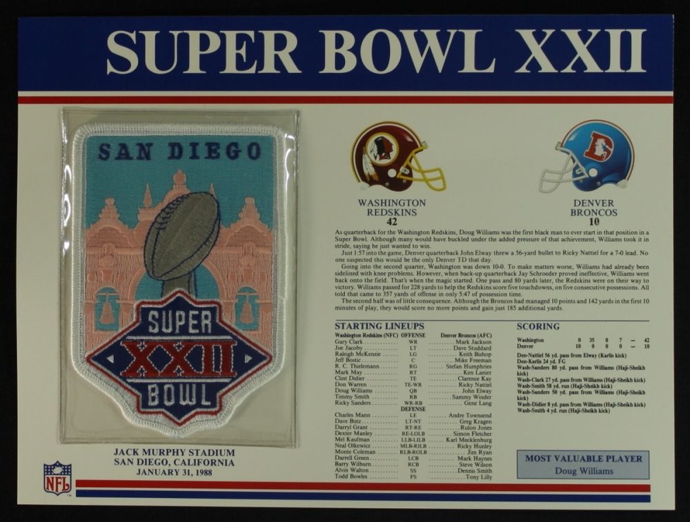 Super Bowl XXII Patch With 12x9 Scorecard: Redskins vs. Broncos