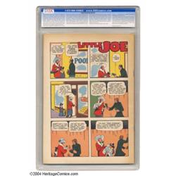 <B>Super Comics #102 File Copy (Dell, 1946) CGC NM+ 9.6 Off-white pages.</B></I> Dick Tracy continues his domination of this title, with another cover spotlight and his name on the masthead, but it wouldn't be long before he got spun off into his own comic series. Issue #115 would be his last appearance in <B>Super Comics</B></I>, and the series would continue for only six more issues after the departure of the square-jawed detective. This later issue -- a file copy -- is in simply superb condition. It is currently the only CGC-graded copy of this issue, and has the straight spine, sharp corners, and overall fresh appearance so highly prized by condition-conscious collectors. Overstreet 2004 NM- 9.2 value = $90. <BR><BR><B>Important notice:</B> Heritage usually auctions material at the rate of 200-250 lots per hour. On some occasions eBay Live bid software or the Internet may not be able to keep up with the pace of the auction. We recommend placing a realistic absentee bid now as insurance to avoid disappointment. Occasionally the auctioneer may eliminate or reject an eBay Live bid, and the auctioneer may also reopen a lot after the close of the eBay live bidding (usually because we missed an audience bid), and may reject your bid even if it shows you as the winning bidder. By bidding via eBay Live, you agree that Heritage may award the lot to another bidder at its sole discretion under the circumstances described above or any other reasonable circumstances. Since eBay bids are not shown to us until we open the lot on the floor, we treat those bids just like floor bids. In most cases the floor responds before the eBay bid is presented to us, due to Internet lag time, so for consistency we have made it a policy that floor bids are always considered first over tie eBay live bids. Also please note that all Heritage lots purchased through eBay Live carry a 20% Buyer's Premium. Please make sure you read the Terms and Conditions before you bid.